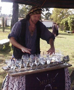 This player of water-filled glasses was just excited to have an audience.