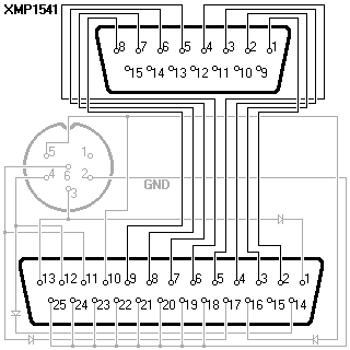 The original connections of the XM1541 multitask cable are shown in grey. You can find the description of all parts used on the diagrams at the legend page.