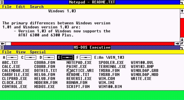 | Windows 1.0x | Die ersten Versionen von Windows waren 1.01 bis 1.04