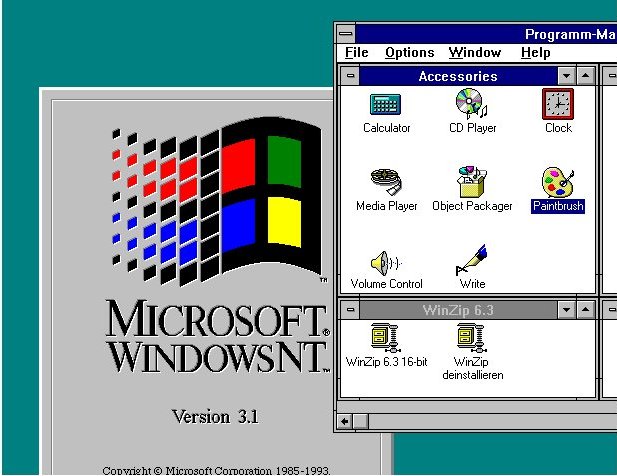 Windows NT 3.5 von 1994 hatte einige Verbesserungen. Lange Dateinamen auch unter FAT16, stabiler als 3.1 und es bot bessere Programmkompatibilität mit Windows 3.1-Programmen. | ![]() |